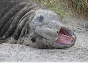 Elephant Seals, specifically the Southern Elephant Seals have the main breeding colony on Sea Lion Island. Breeding activity peaks in December and January and their population has declined due to commercial fishing that impacts their food courses. They are extremely large and can weigh up to 8,800 lbs. They are not friendly to humans and due to their large size, sharp teeth and the swiftness on land, it is advisable to keep at least 50-100 feet away and not disturb them.