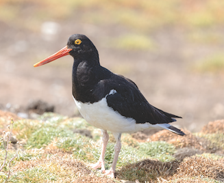 Magellanic Oystercatcher prefers sandy or a muddy coastline and can be seen searching rockpools for worms, crabs or other invertebrates. A very striking bird with a white breast contrasting against a slate black upper body with bright yellow eyes and long orange bills.